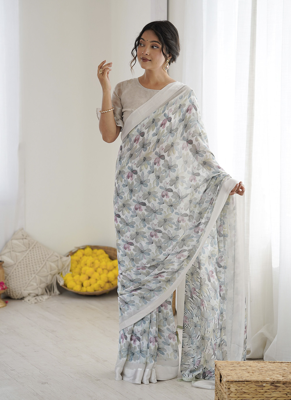 Garb These Party Wear Saree in Fine Colored.These Saree Are Georgette And Blouse is Fabricated On Georgette Pair.Its Beautified With Plain Saree With Woven Border Designer Printed Saree.