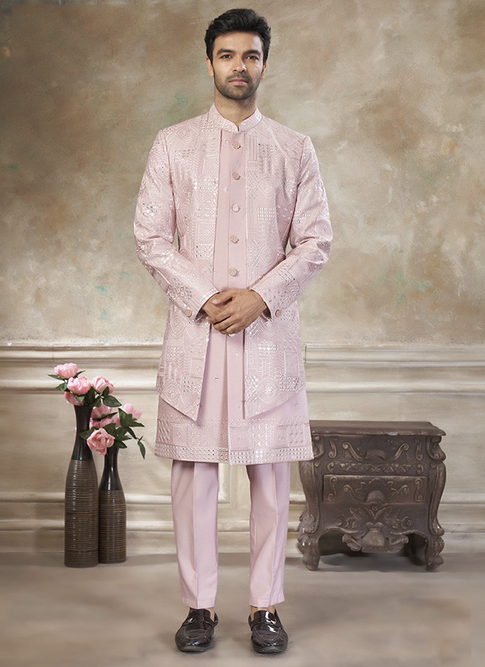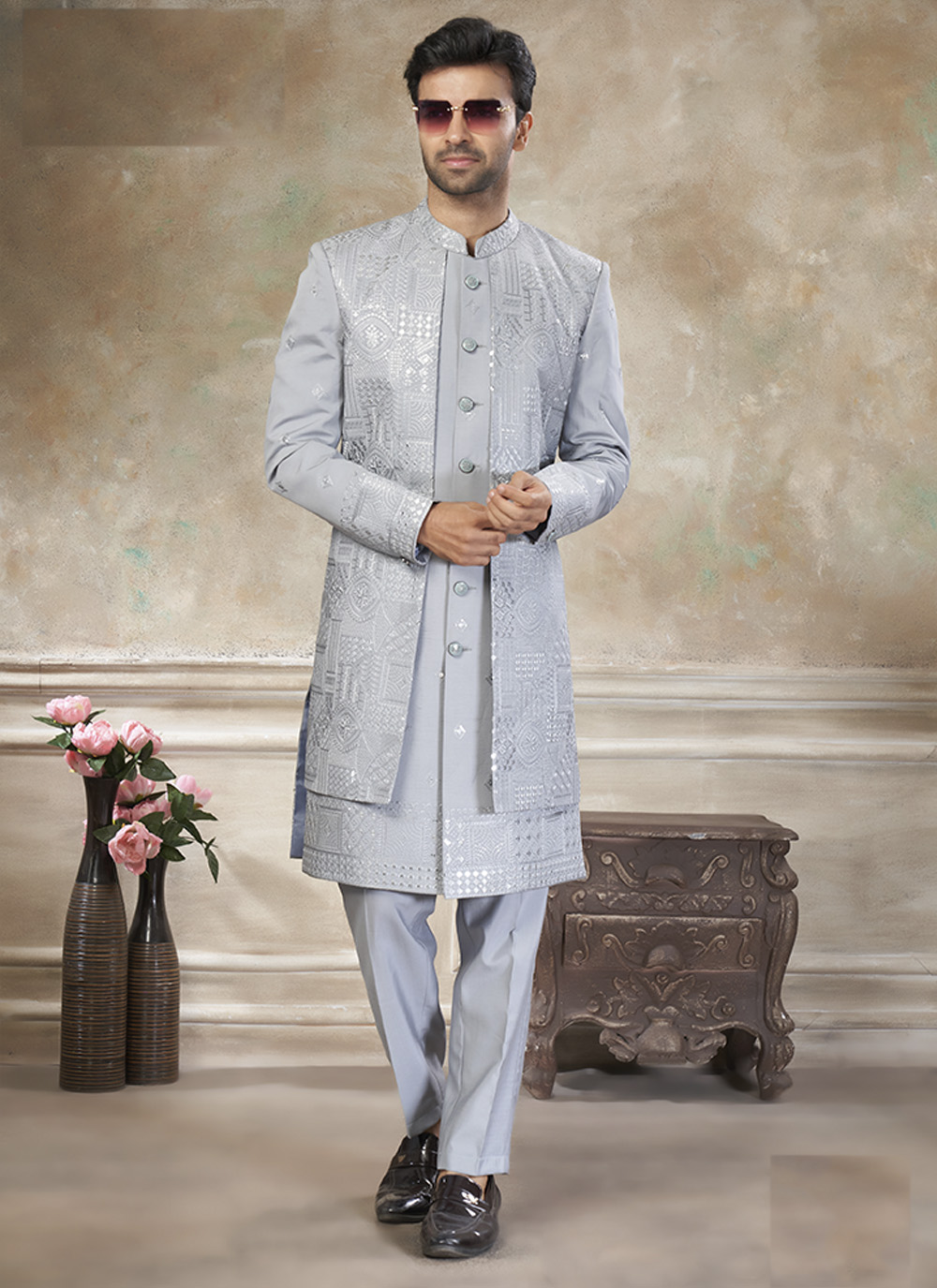 Looking These Party Wear Mans Wear Indo Western Top Bottom wearing this fashionable. Tailored Top And Bottom Are Silk Fabriced With Designer Thread,Sequance Embroidery Work.