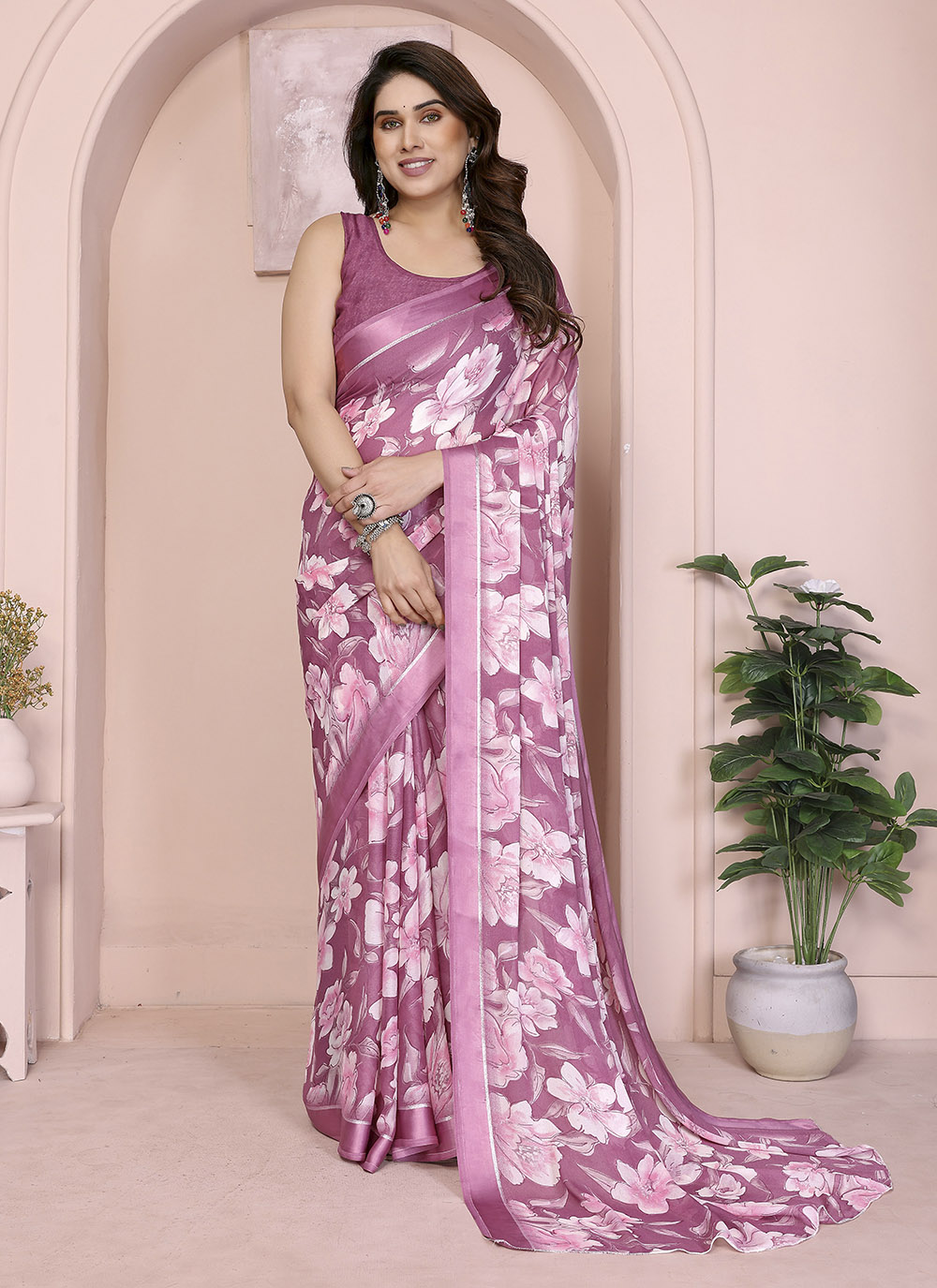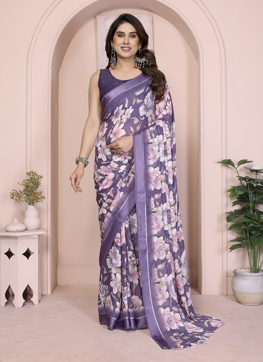 Garb These Party Wear Saree in Fine Colored.These Saree Are Moss Satin Patta And Blouse is Moss Satin Patta Fabricated.Its Beautified With Woven Patta Border Designer Printed.