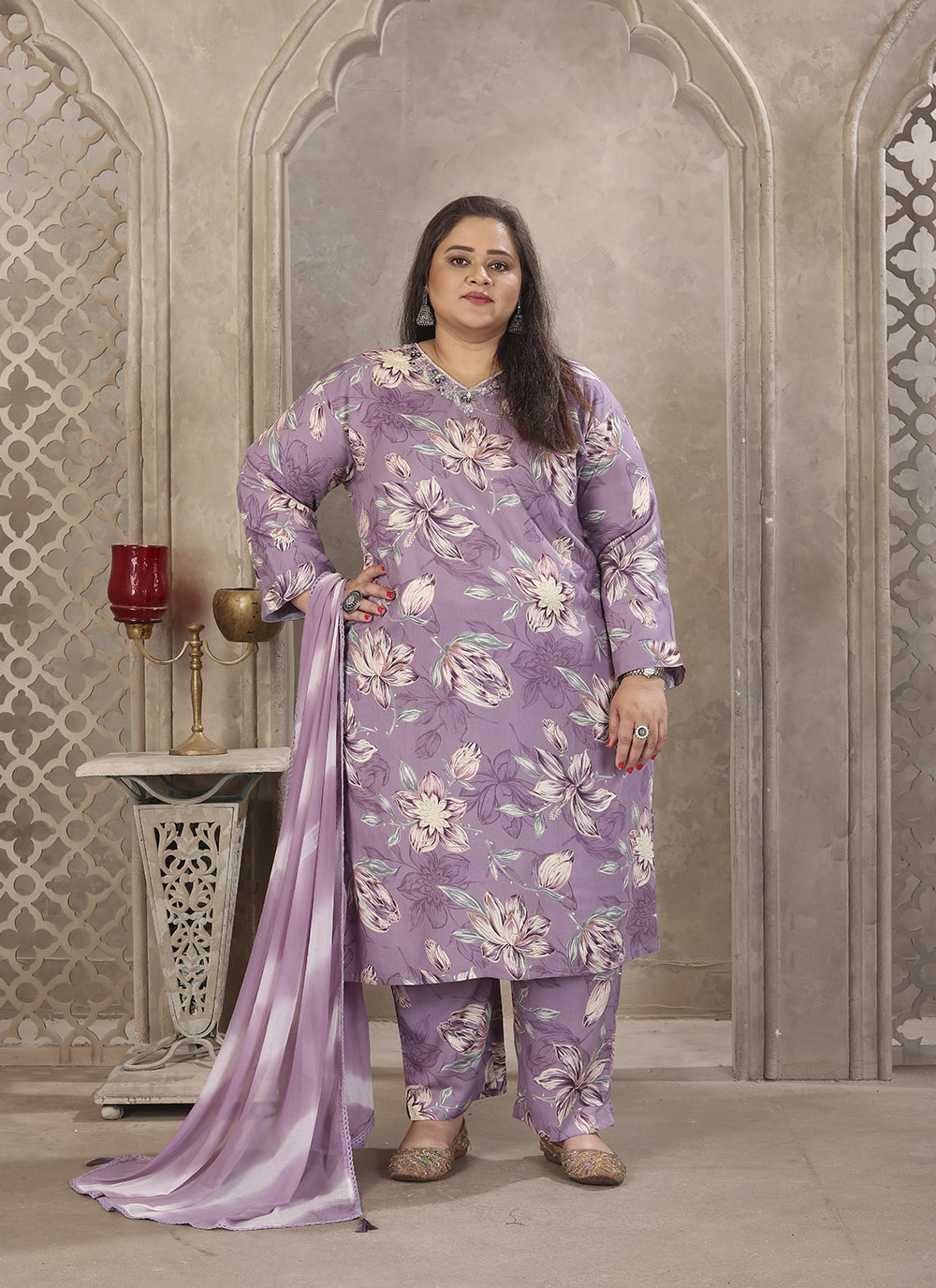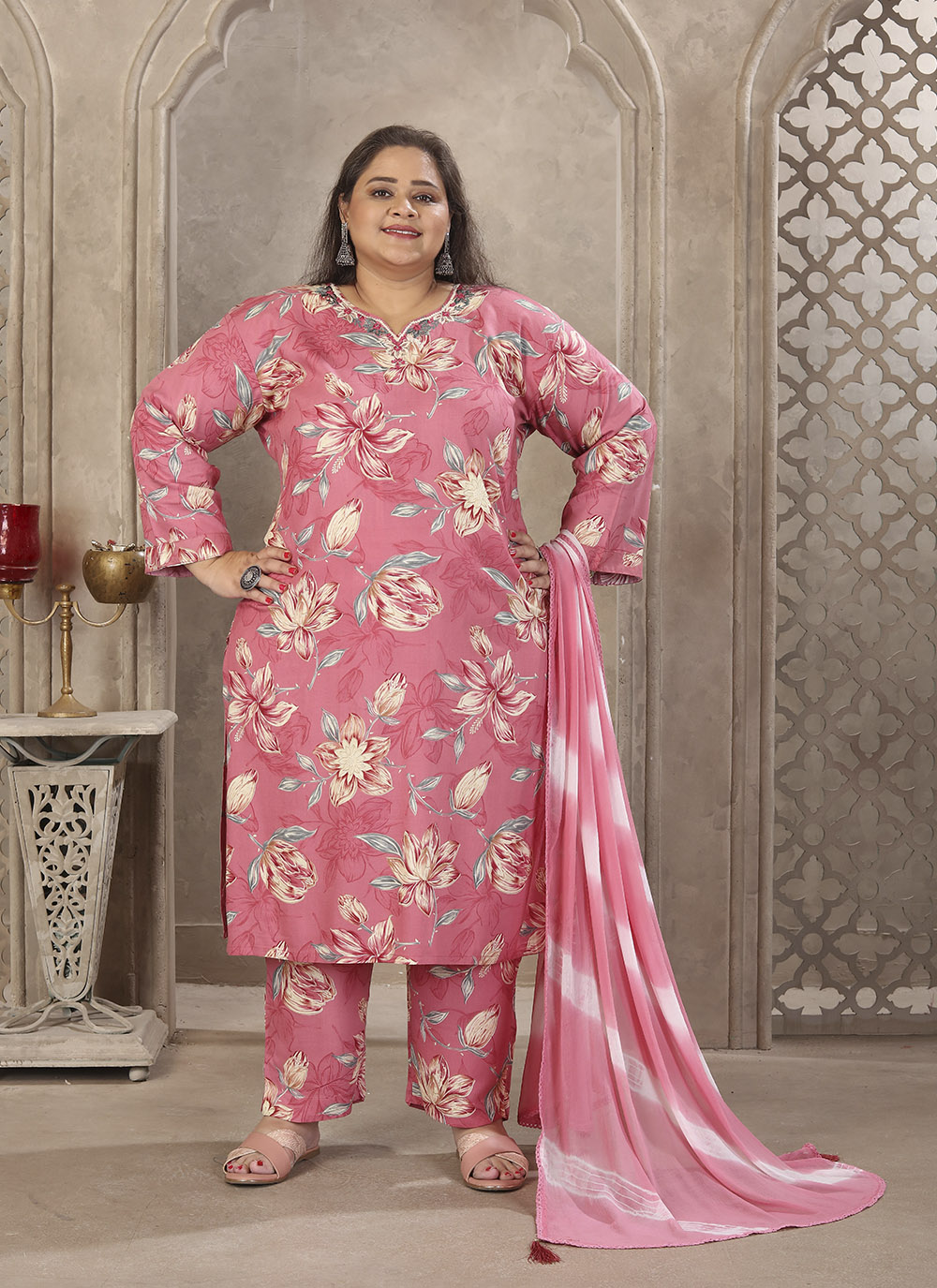 Attrective These Beautiful Looking Readymade Big Size Suits.These Top And Bottom Are Lichi Viscose And Dupatta Fabricated On Linen Jacquard.Its Beautified With Designer Printed With Hand Work.