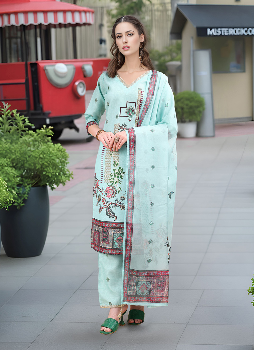 Attrective These Beautiful Looking Readymade Suits.These Top And Bottom Are Linen And Dupatta Are Tabby Chiffon Fabricated.Its Beautified With Disigner Digital Foil Printed.