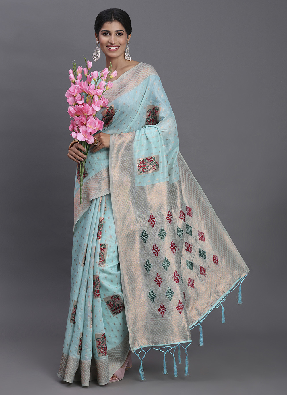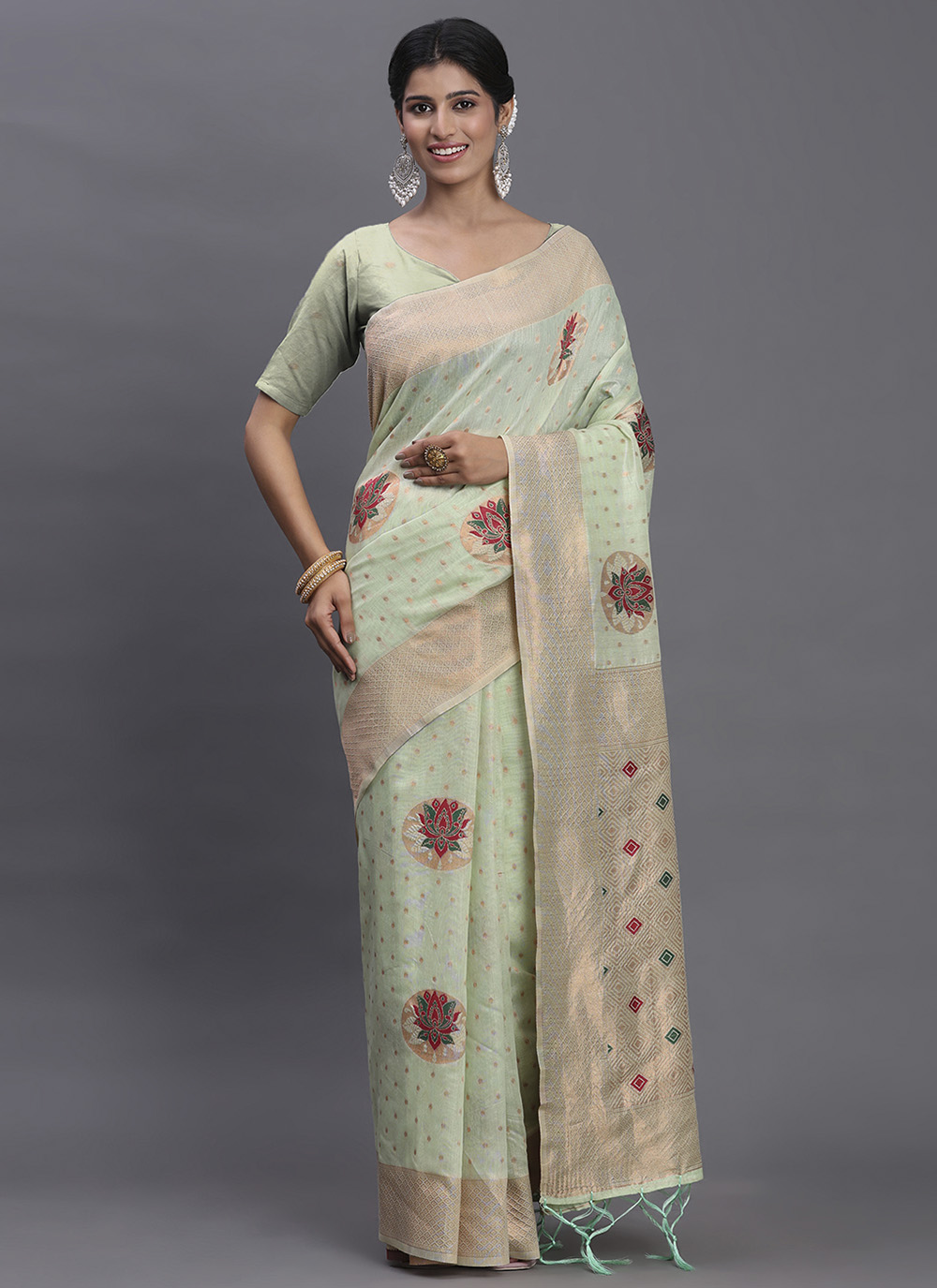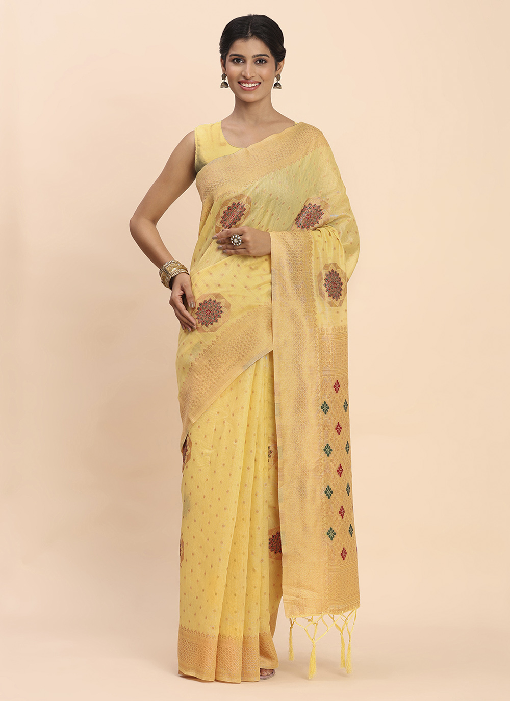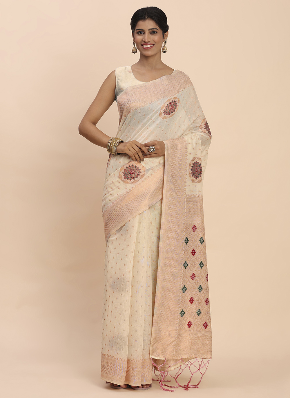 Attractive These Fastive And Party Wear Saree in Fine Colored.These Saree And Blouse is Fabricated On Linen Cotton.Its Beautified With Heavy Weaving Havey Designer.
