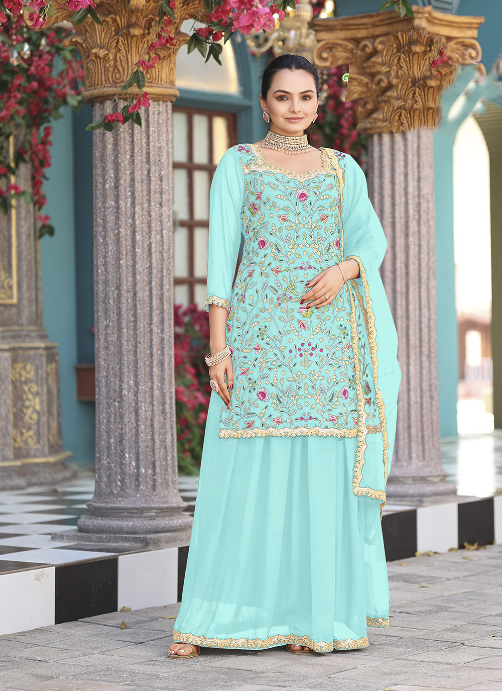 Top : Georgette , Bottom : Georgette , Dupatta : Net