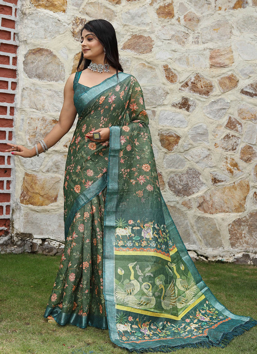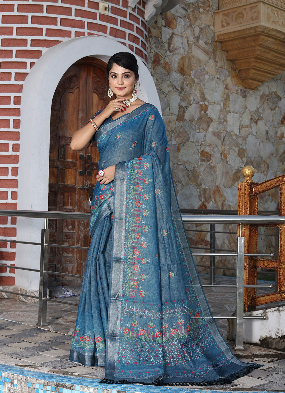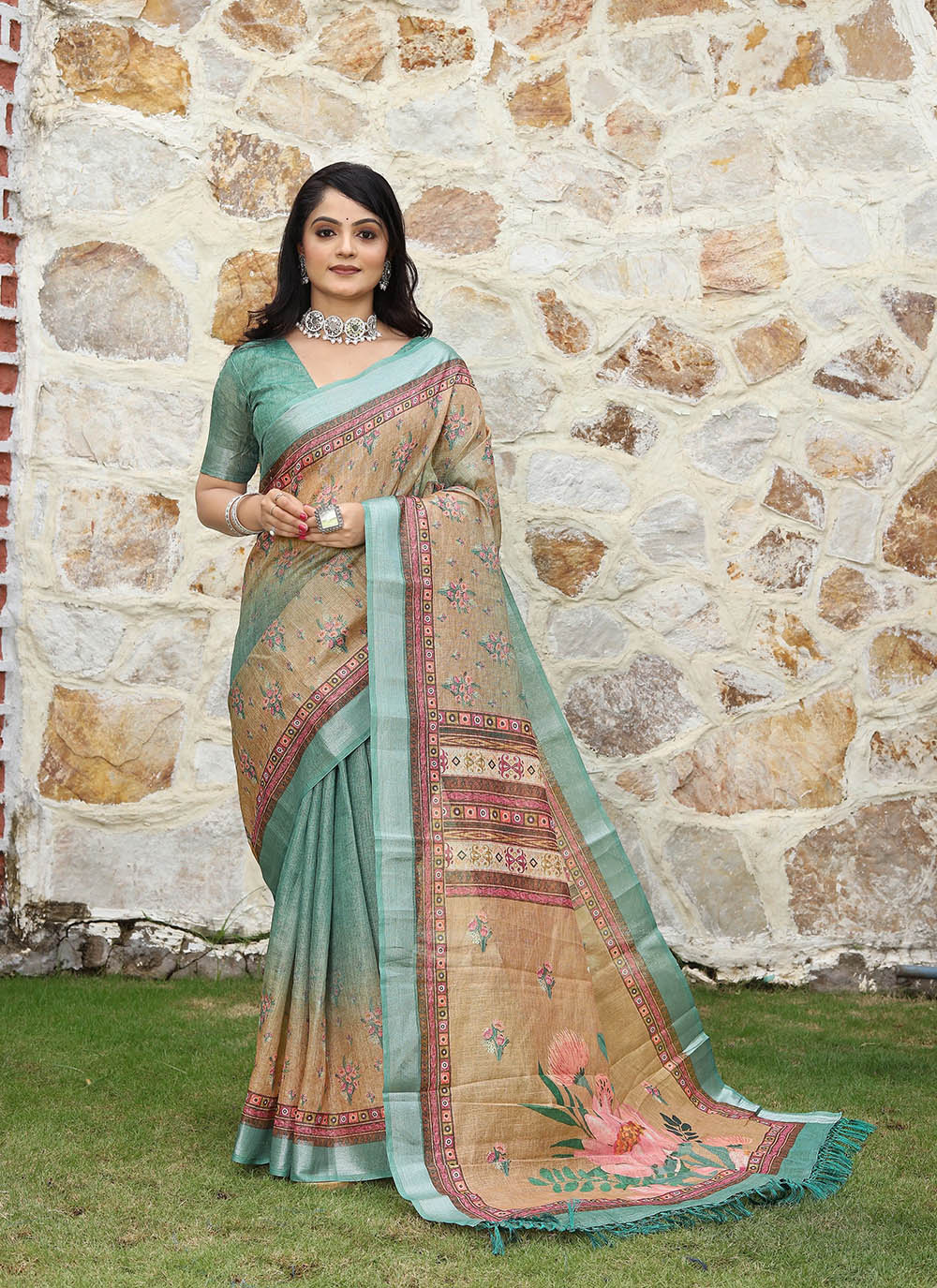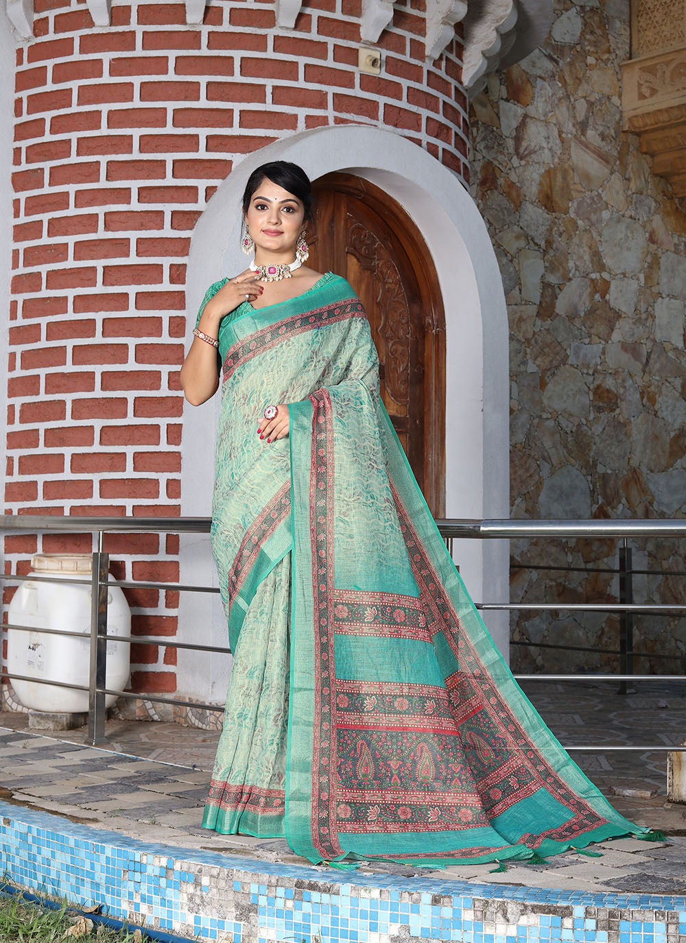 Look These Fastive Saree in Fine Colored.These Saree Are Cotton Shimmer And Blouse is Fabricated On Cotton Shimmer Pair.Its Beautified With Wevon Jari Border With Designer Printed.