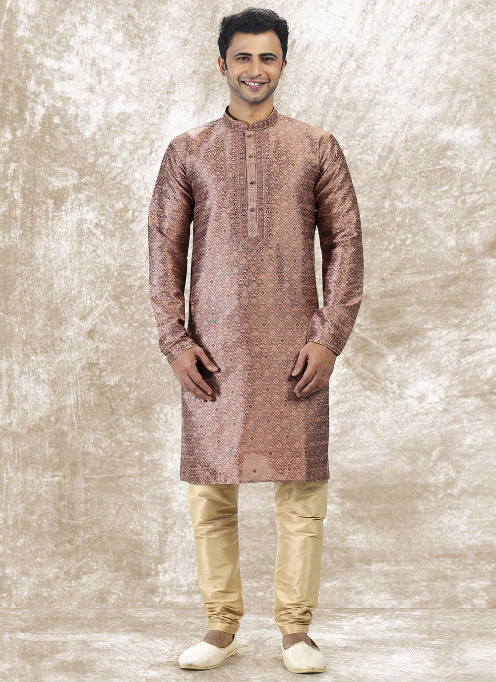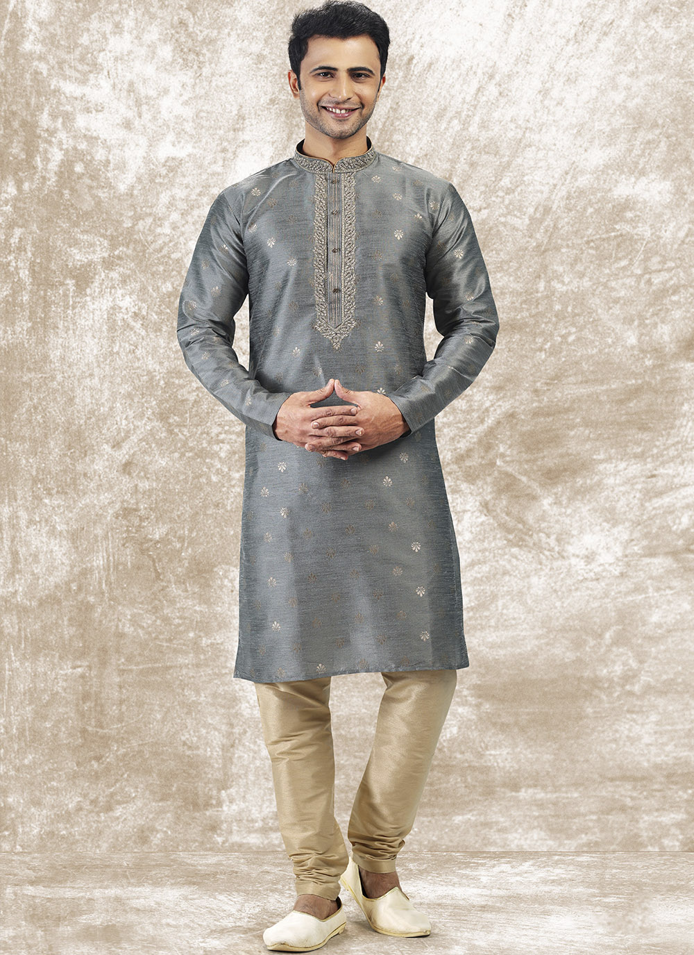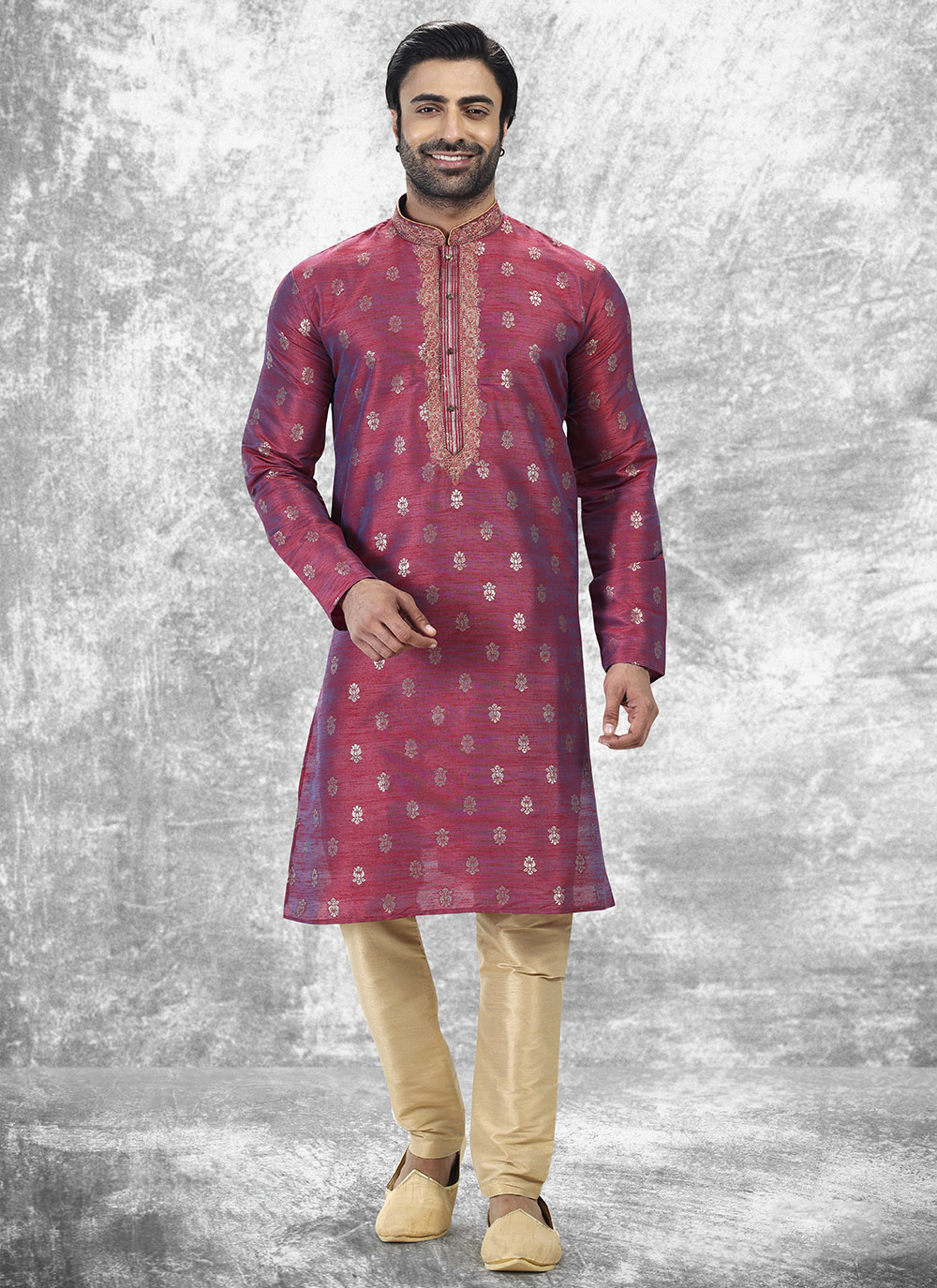Looking These Party Wear Mans Wear Kutra Payjama wearing this fashionable. These Kurta Are Jacquard Silk And Payjama Art Silk finest Fabriced With Woven Designer With Mirror,Thread Embroidery Work.