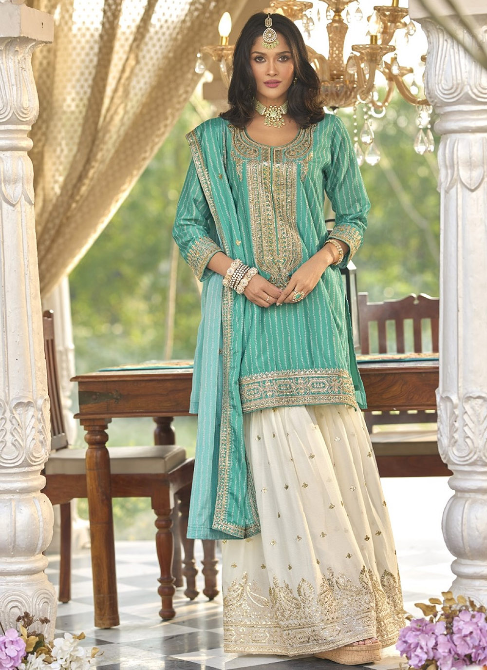 Looking These Party Wear Designer Plazzo Suits in Fine Colored Pair With Dupatta.These Top Are Chinon And Dupatta Are Fabricated On Chinon Pair With Chinon Bottom.Its Beautified With Heavy Designer Embroidery Work.