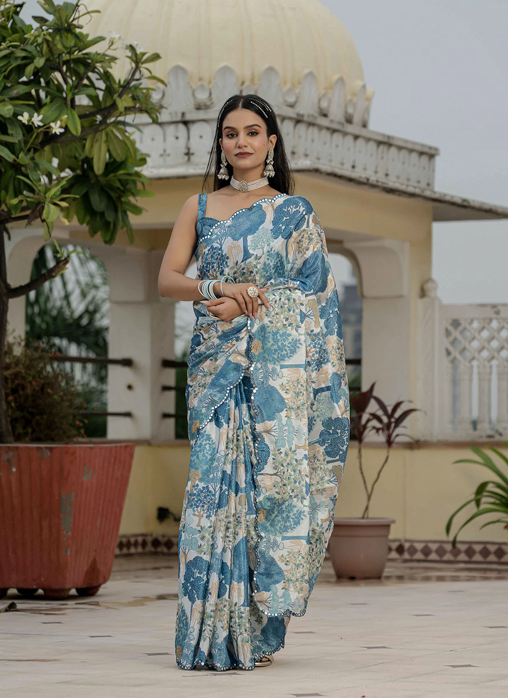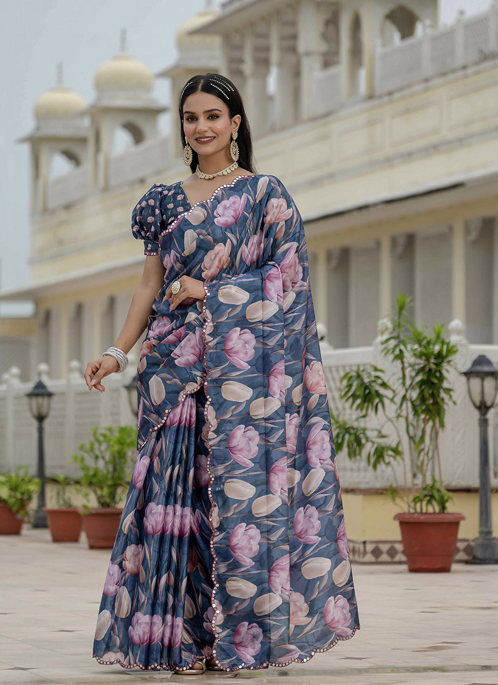 Saree : Chinon , Blouse : Chinon