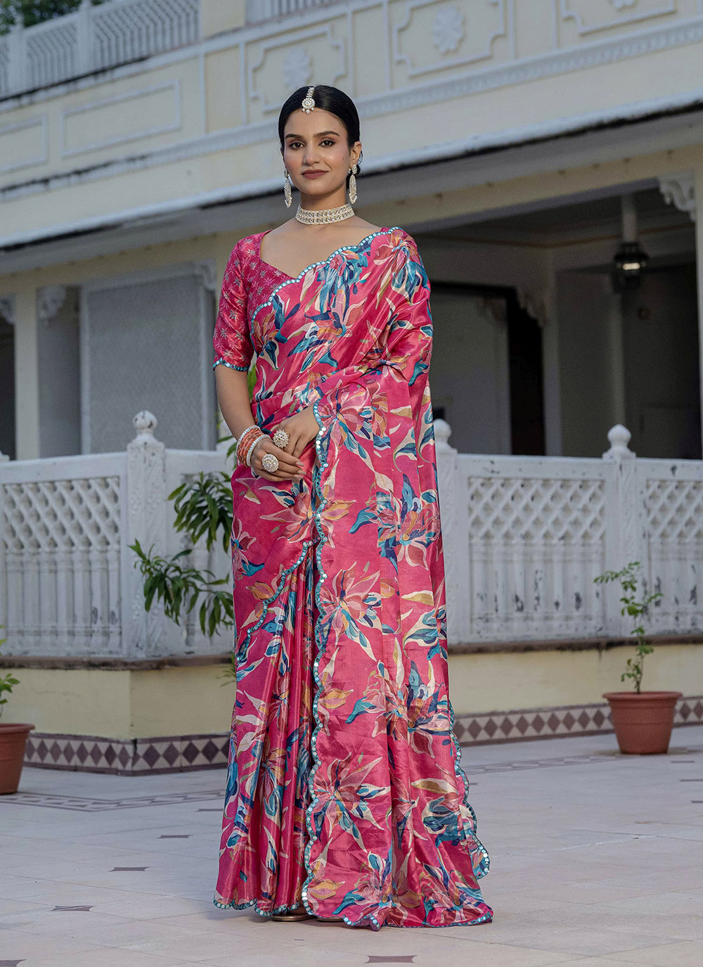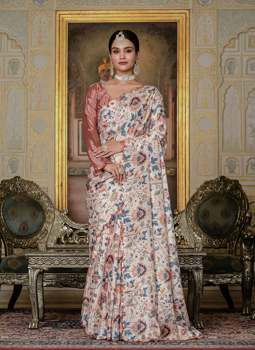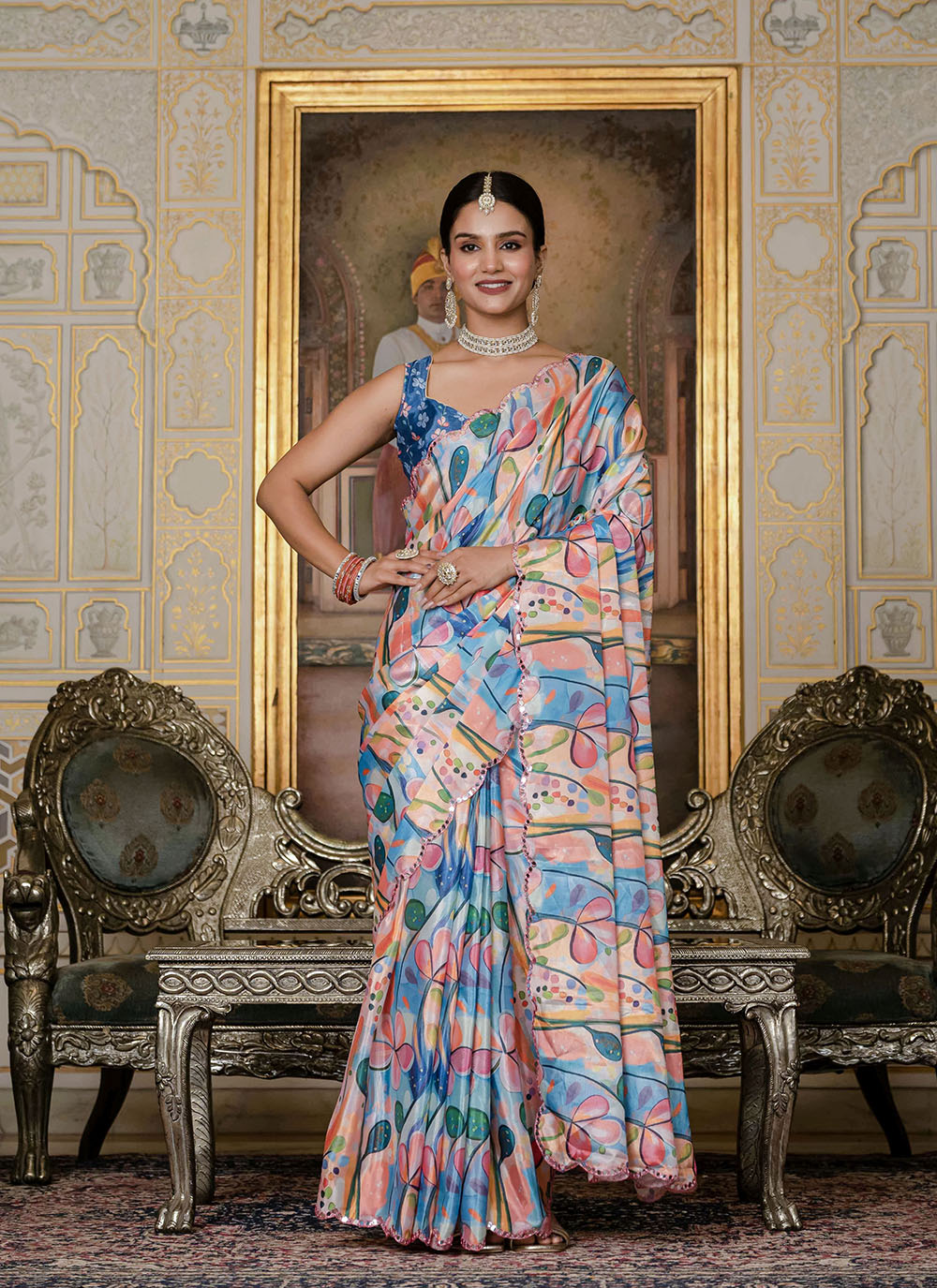 Looking These Party Wear Ready To Wear Saree in Fine Colored.These Saree is Fabricated On Chinon Pair With Chinon Blouse.Its Beautified Designer Digital Printed With Mirror Cut Work Border.