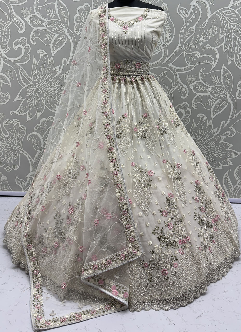 For A Fancy Designer Look,Grab These Lehenga Choli With Dupatta in Fine Colored.These Lehenga And Choli Are Net And Dupatta Are Fabricated On Soft Net Pair.Its Beautified With Heavy Flower Multy Cotton Thread,Silver Dori, Sequance Embroidery,Zarkon Diamond With Crystal Pipi Hand Work.
