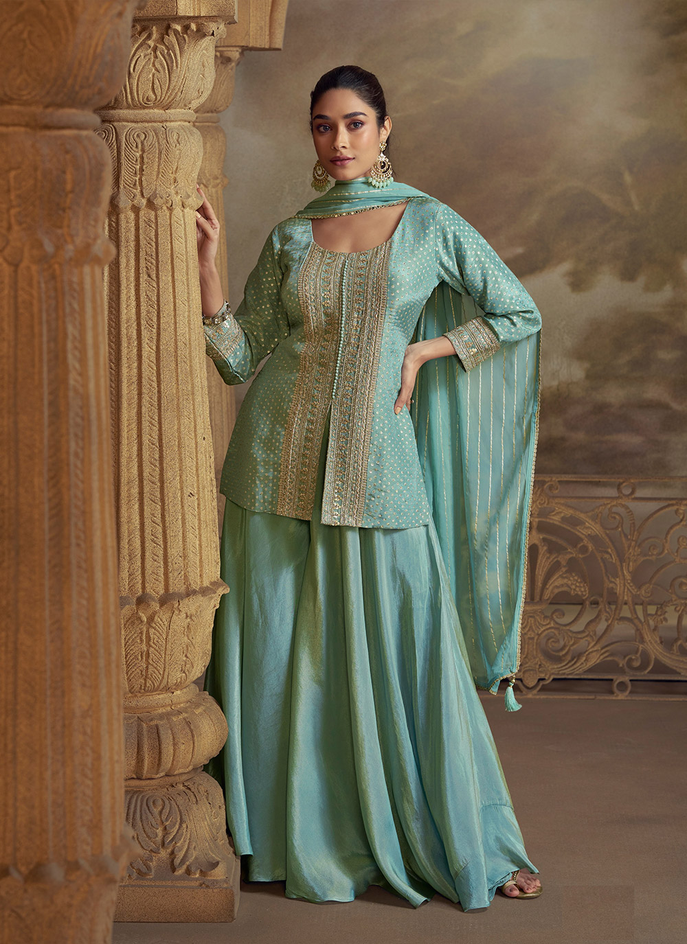 Attractive These Party Wear Free Size Stitched Plazzo Suit in Fine Colored Pair.These Top And Bottom Are Georgette And Pair With Santoon Inner.Its Beautified With Heavy Designer Embroidery Work.
