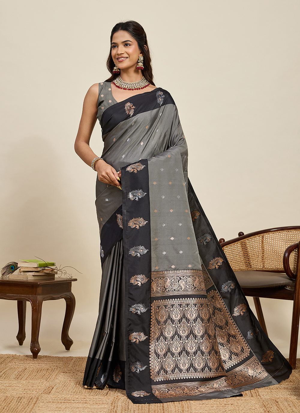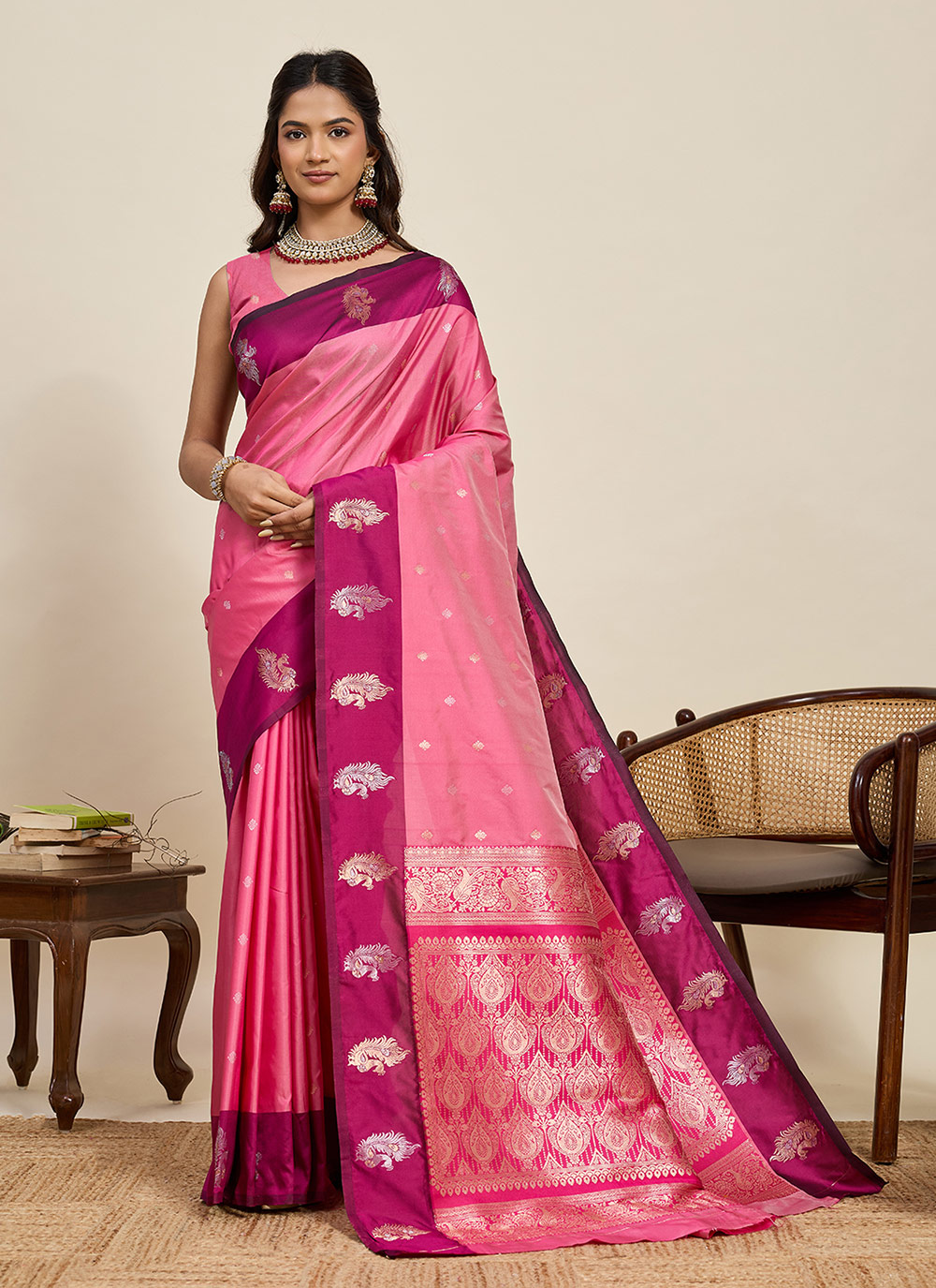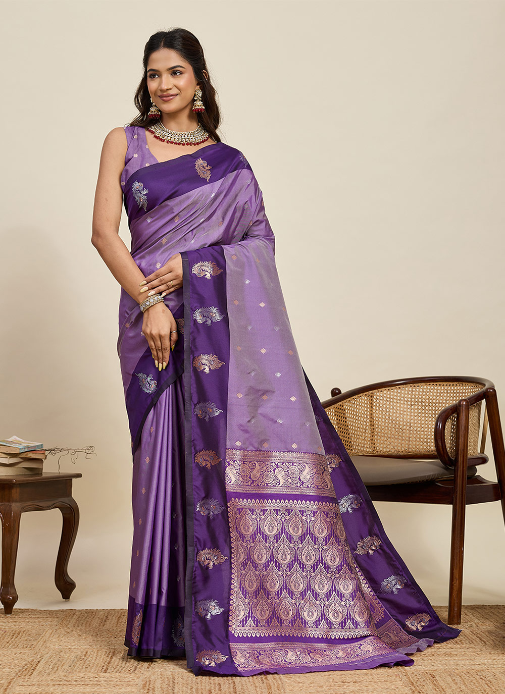 Attractive This Party Wear Saree Paired With Blouse.This Saree And Blouse Are Soft Silk Fabric With Woven Jari Designer. Buy This Pretty Saree Now.