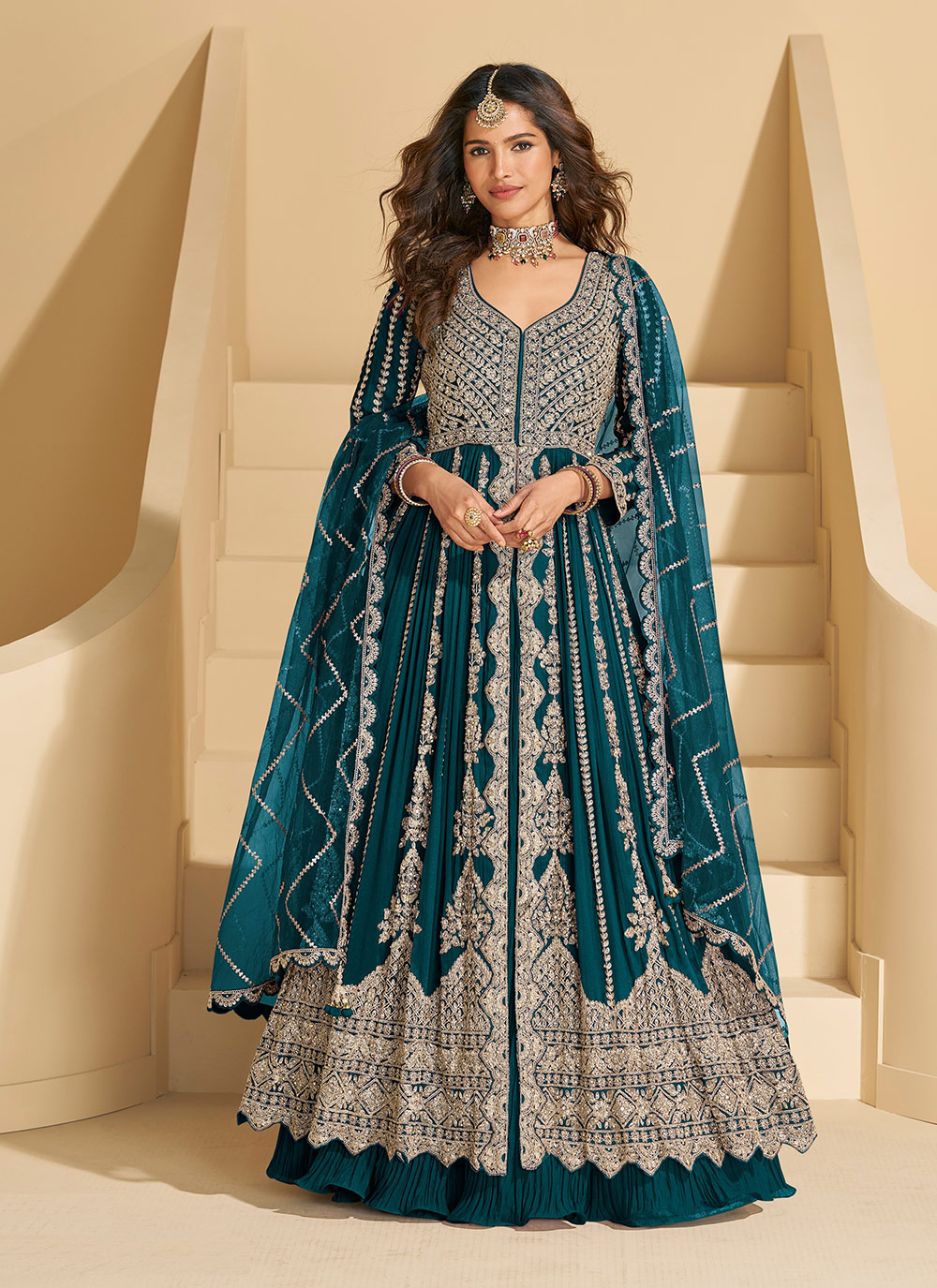 Attractive These Party Wear Free Size Stitched Anarkali Suit in Fine Colored Pair.These Top And Dupatta Are Chinon And Pair With Santoon Inner.Its Beautified With Heavy Designer Embroidery Work.
