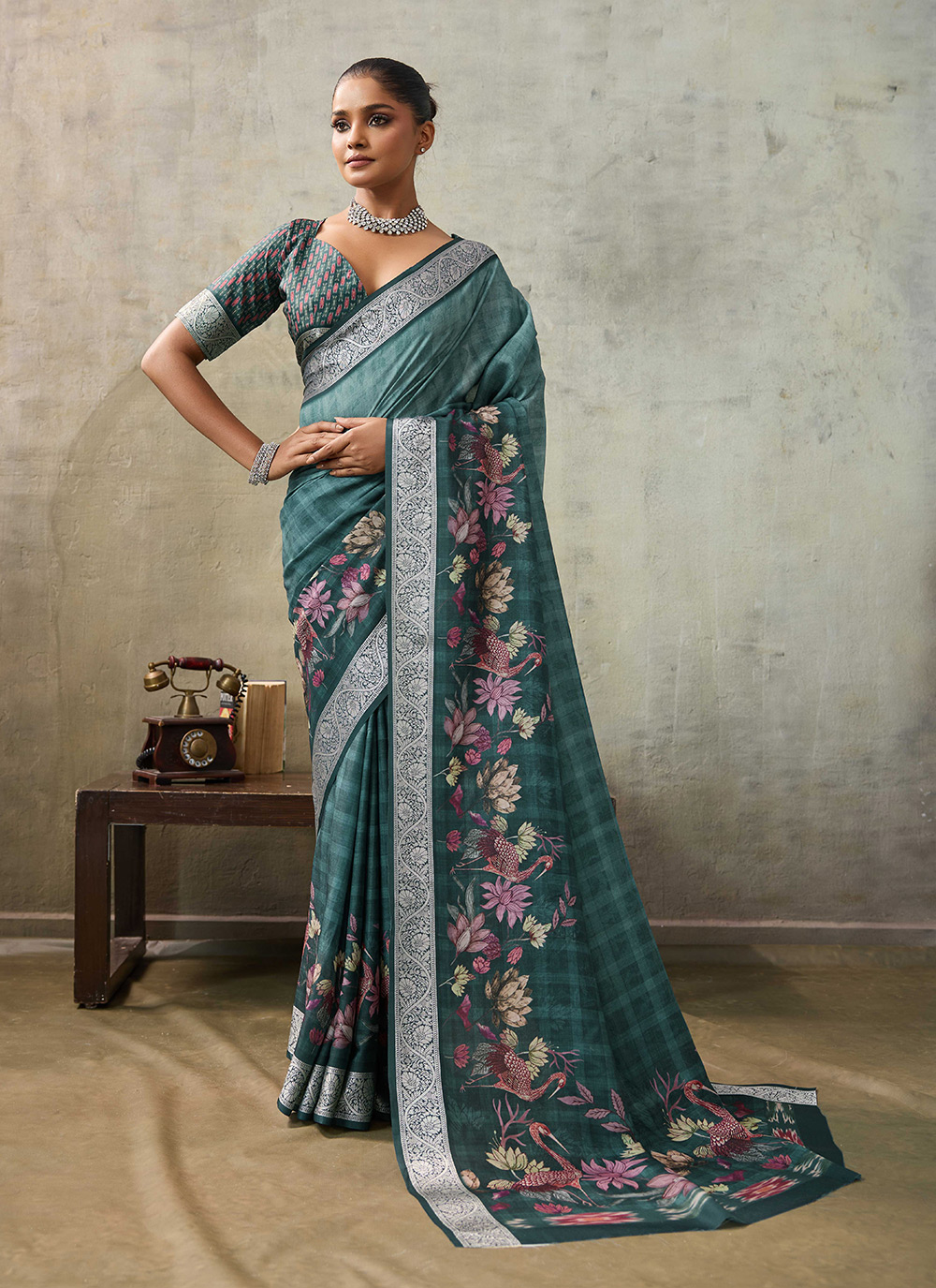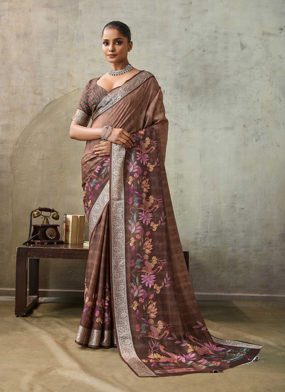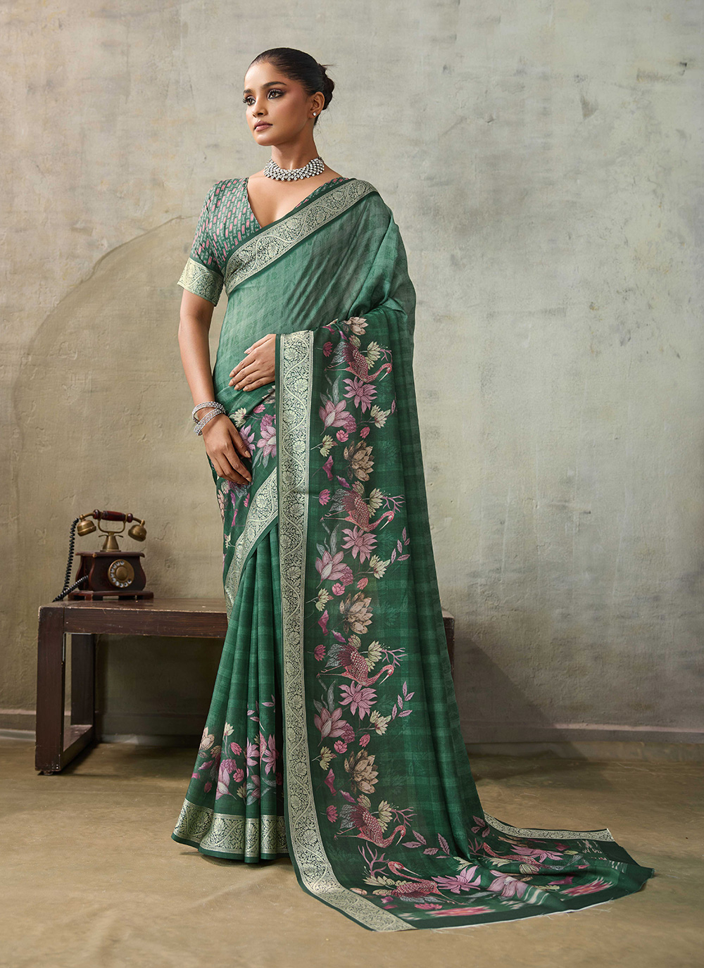 Attrective These Party Wear Saree in Fine Colored.These Saree Are Crepe Viscose And Blouse is Fabricated On Crepe Viscose Pair.Its Beautified With Woven Border Designer, Digital Printed.