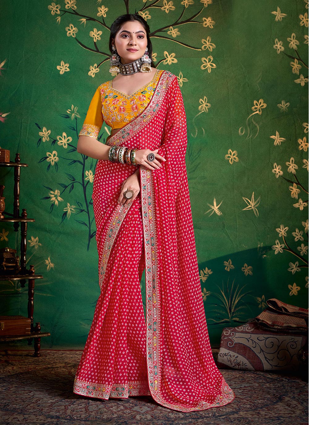 Garb These Party Wear Saree in Fine Colored.These Saree Are Georgette And Blouse is Fabricated On Georgette Pair.Its Beautified With Printed Designer With Embroidery Work Lace Border And Blouse.