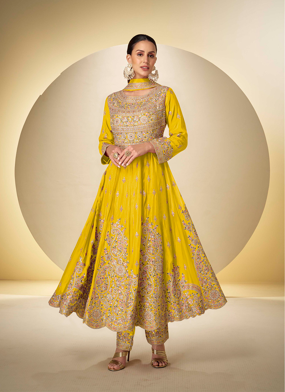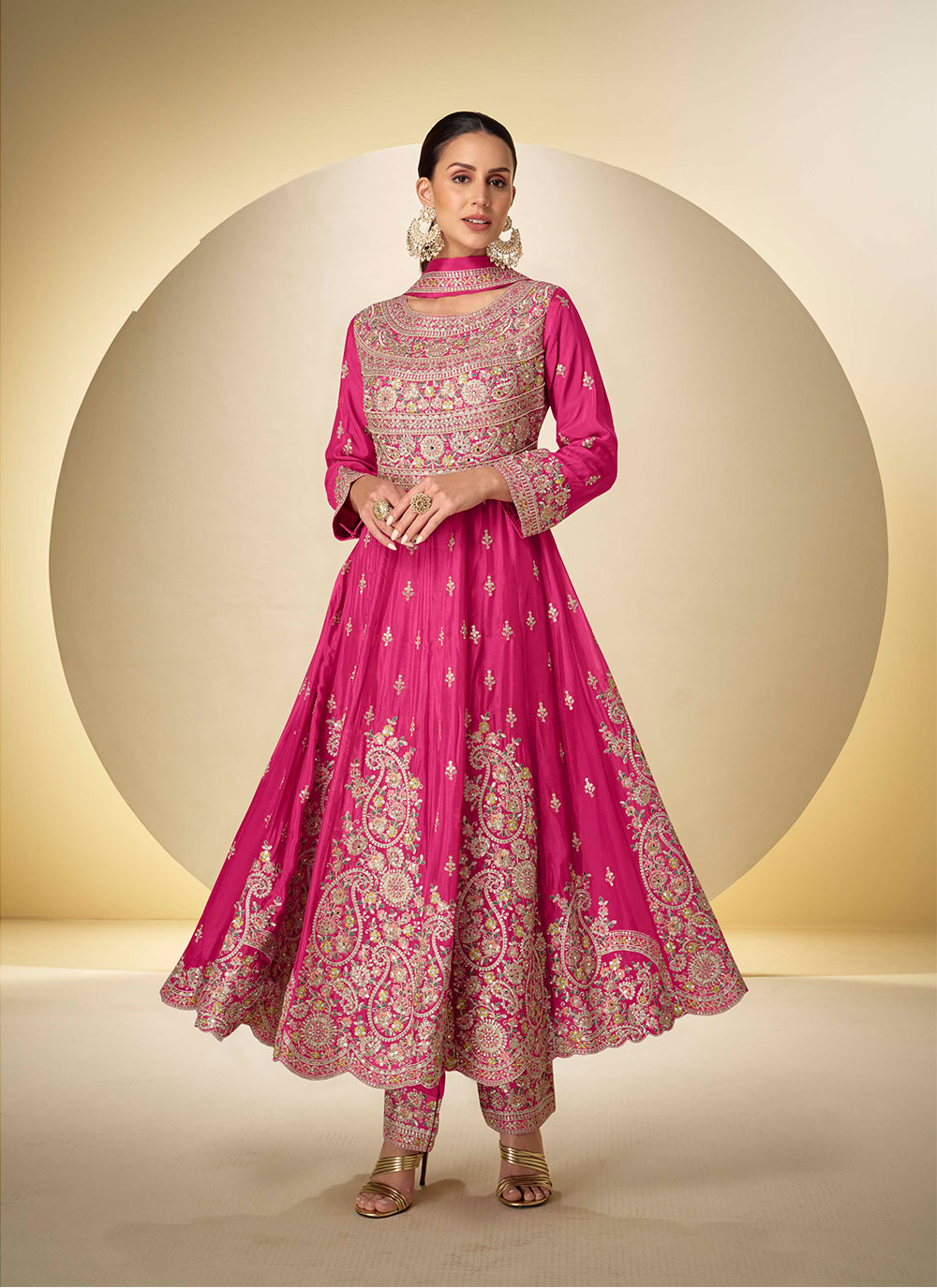 Attrective Looking These Designer Suit in Fine Colored Pair With Bottom And Dupatta.These Top And Bottom Are Fabricated On Chinon Pair With Chinon Dupatta.Its Beautified With Designer Heavy Embroidery Work.