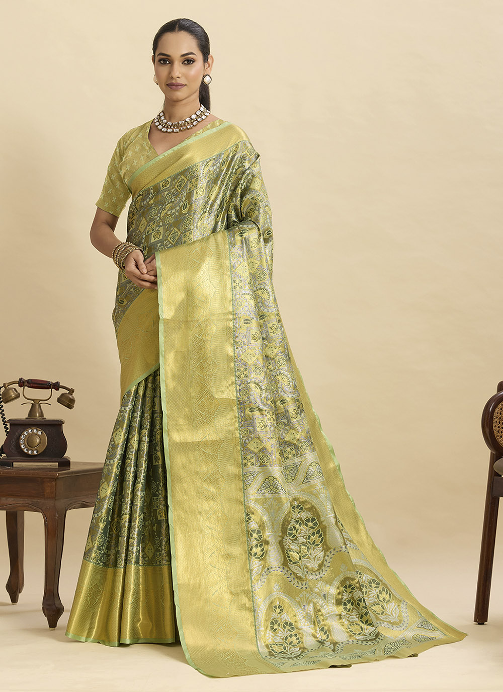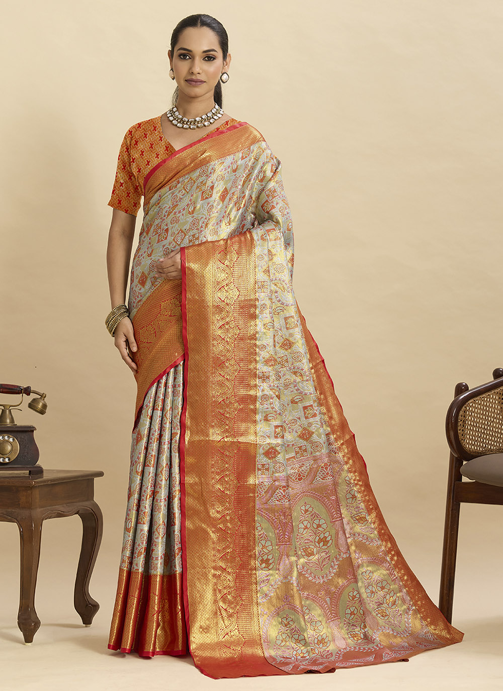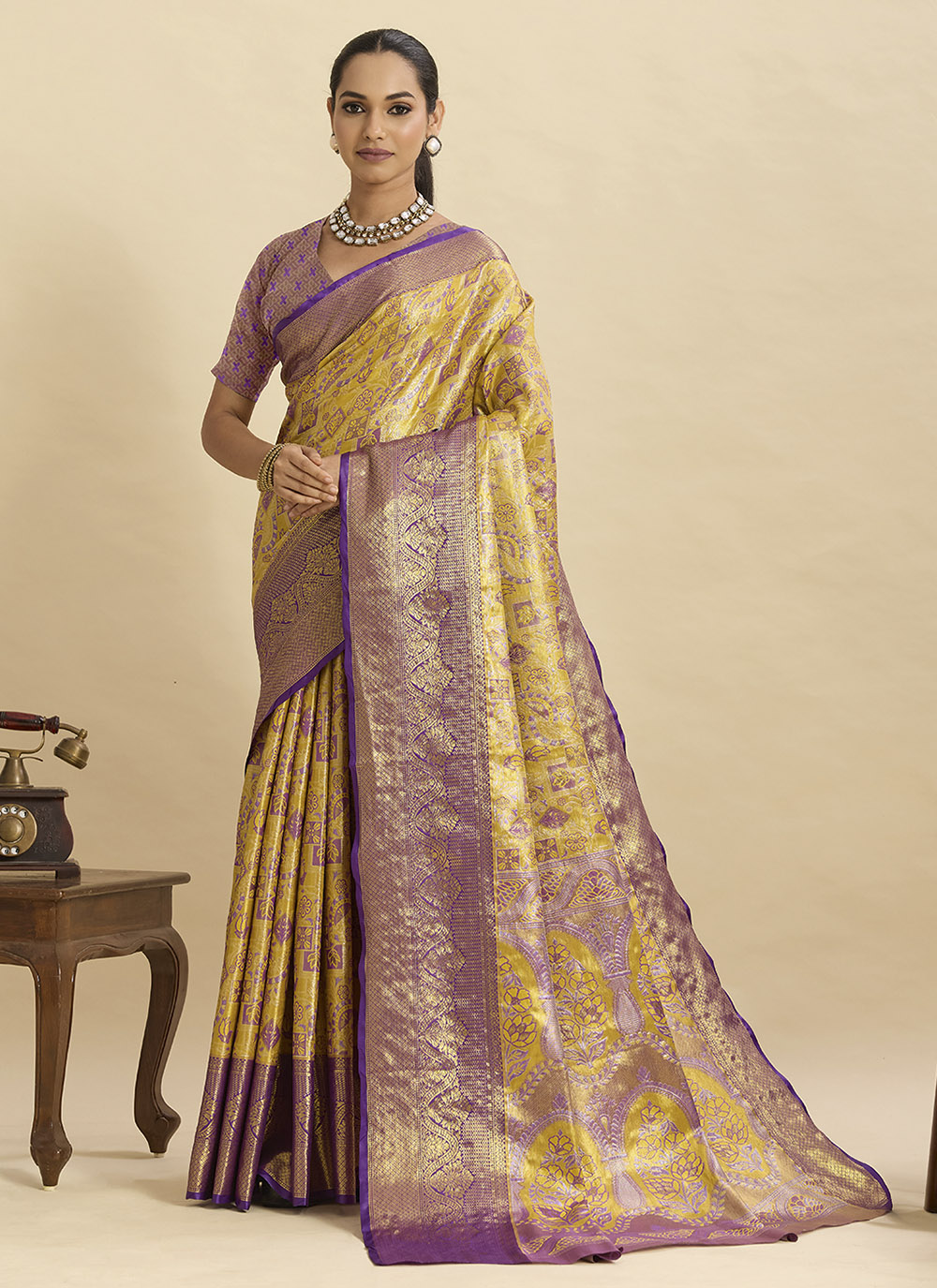 Looking This Party Wear Saree Paired With Blouse.This Saree And Blouse Are Silk Fabric With Woven Designer. Buy This Pretty Saree Now.