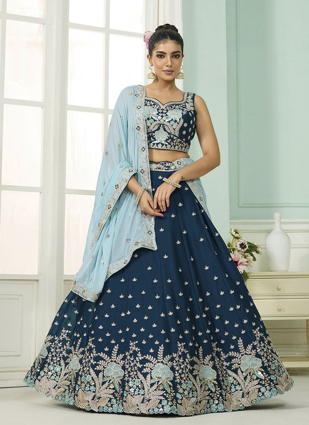 Garb This Party Wear Fine Color Fancy Heavy Designer Choli And Lahenga Fabriced On Georgette And Dupatta Georgette In Fabricated Beautified With Attrective Designer Heavy Sequance,Multy Thread Embroidery Work. Buy Now.