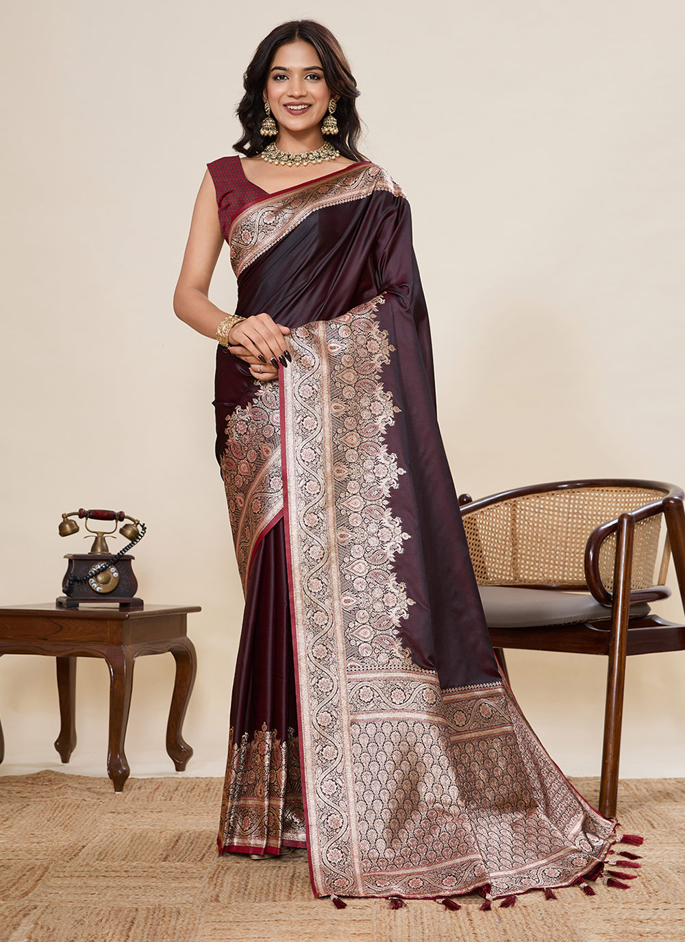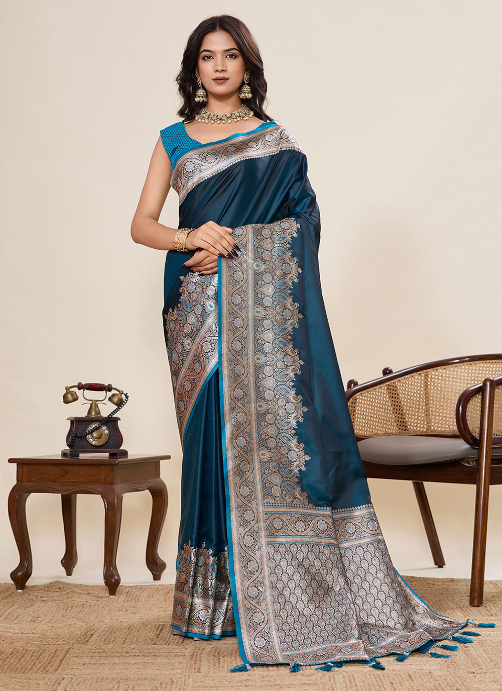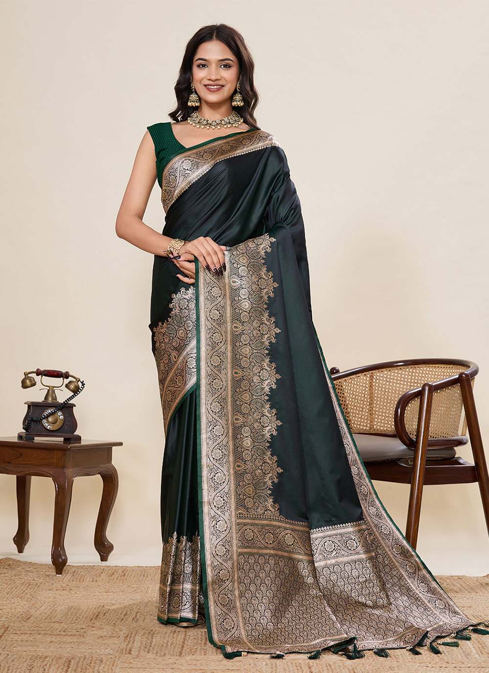 Garb This Party Wear Saree Paired With Blouse.This Saree And Blouse Are Satin Silk Fabric With Woven Jari Border Galla Designer. Buy This Pretty Saree Now.