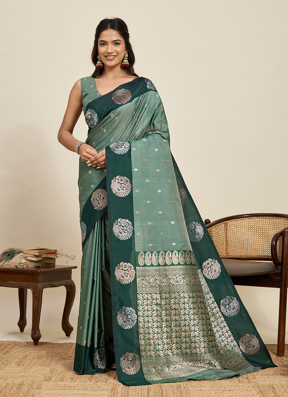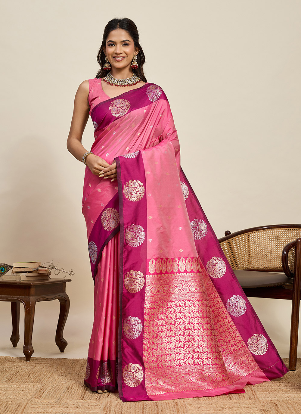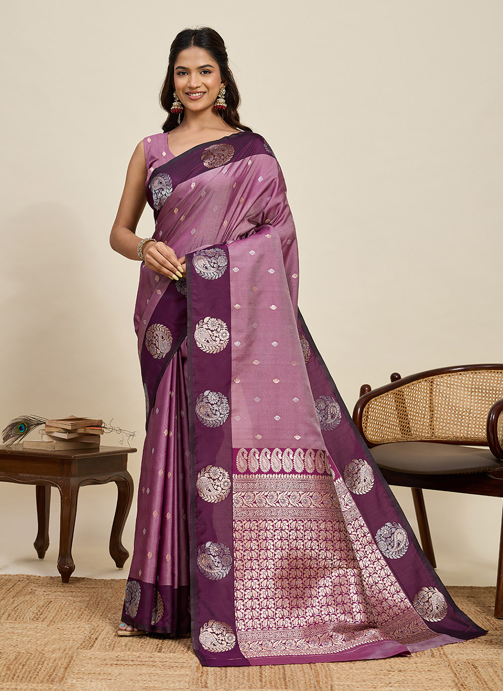 Attractive This Party Wear Saree Paired With Blouse.This Saree And Blouse Are Soft Silk Fabric With Woven Jari Designer. Buy This Pretty Saree Now.