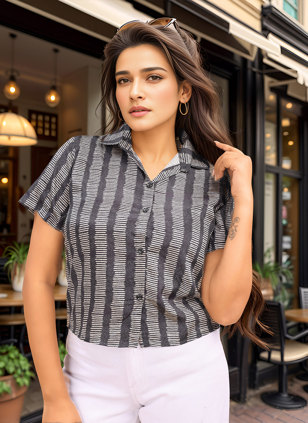 Attrective These Beautiful Looking Readymade Western Short Shirts.These Shirts Fabricated On Crepe Silk.Its Beautified With Designer Digital Printed.