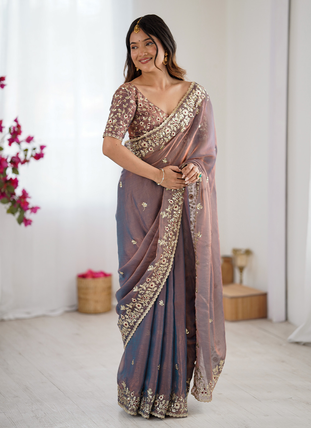 Looking These Party Wear Saree in Fine Two Tone Colored.These Saree Are Fendy Chiffon And Blouse is Fendy Chiffon Fabricated.Its Beautified With Two Tone Color With Designer Sequance Embroidery Work.