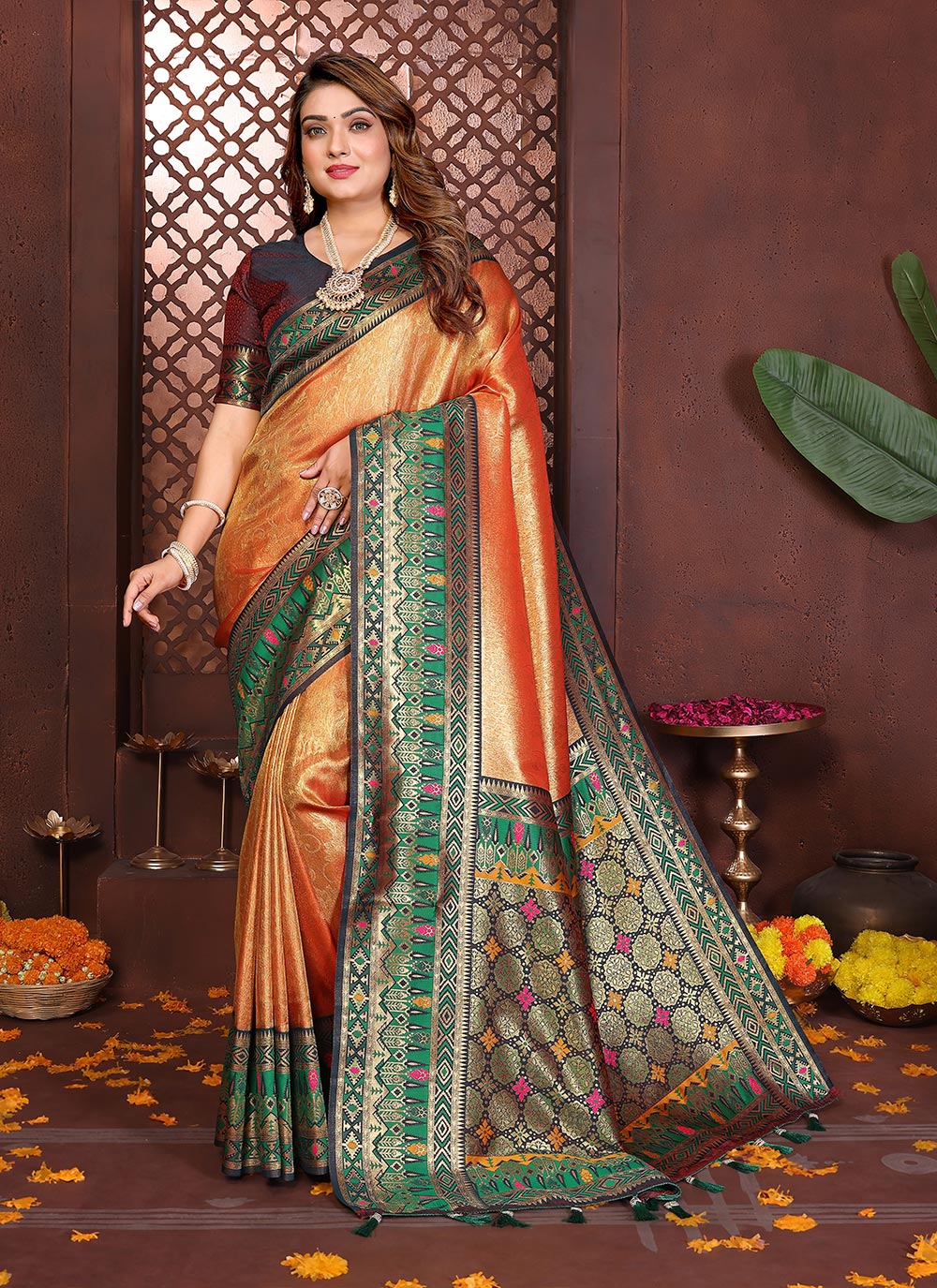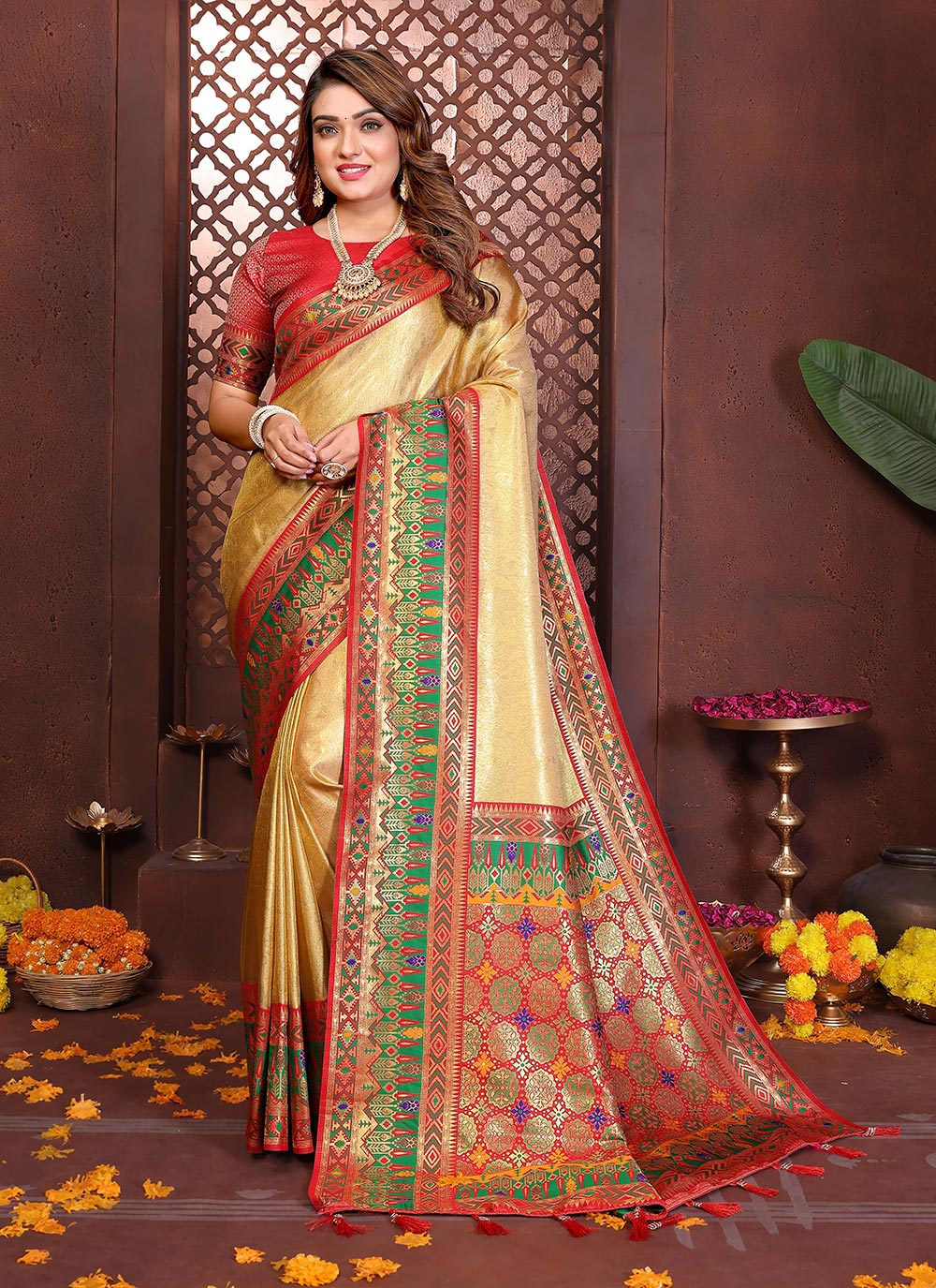 Saree : Banarasi Tissue Silk , Blouse : Banarasi Tissue Silk