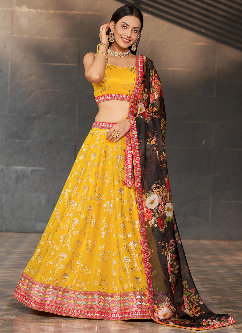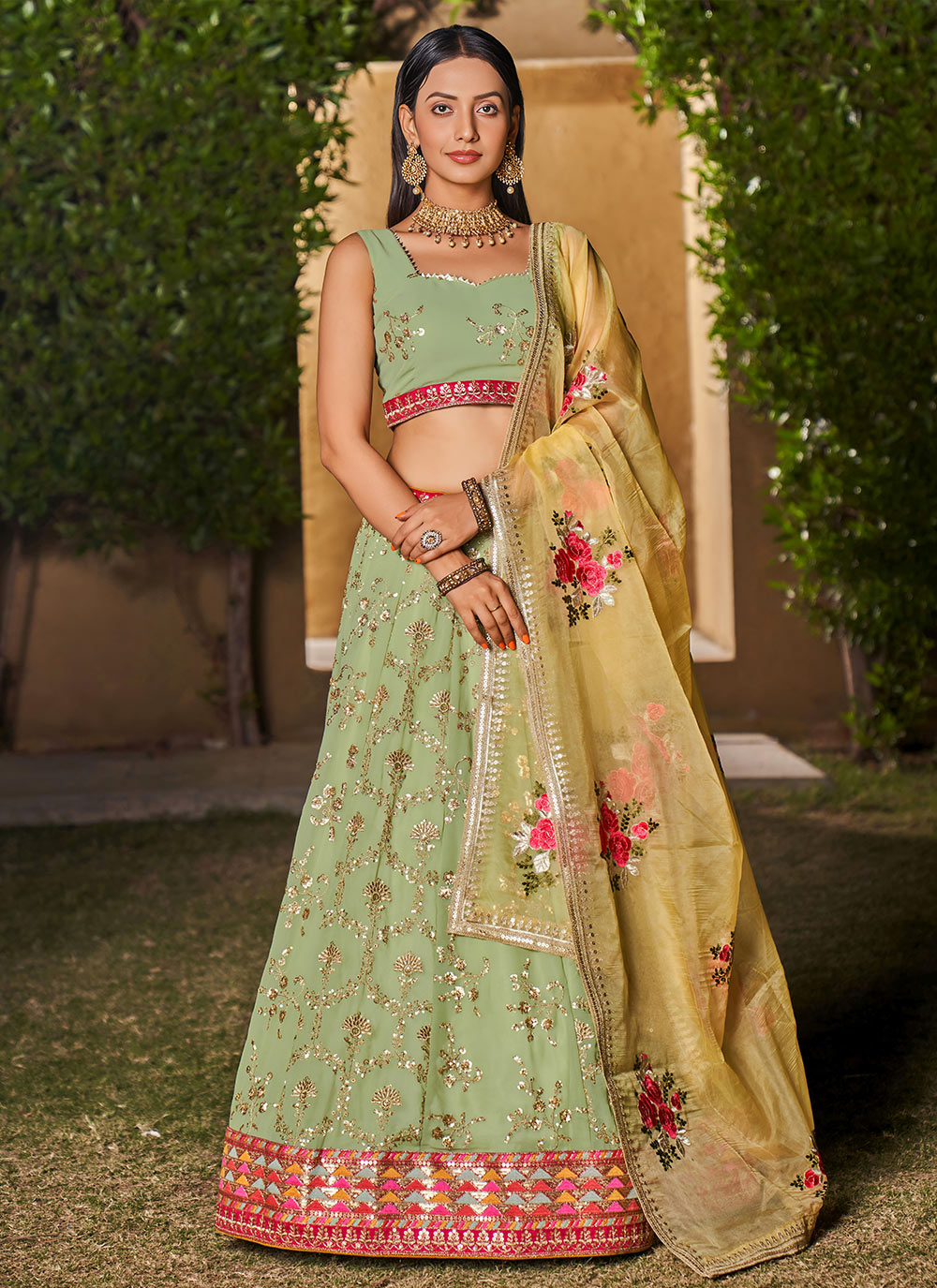 For A Designer Look,Grab These Party Wear Lehenga Choli in Fine Colored.These Lehenga Are Geoegette And Blouse Are Fabricated On Art Silk Pair With Dupatta Are Chinon.Its Beautified With Designer Thread,Sequance Embroidery Work.