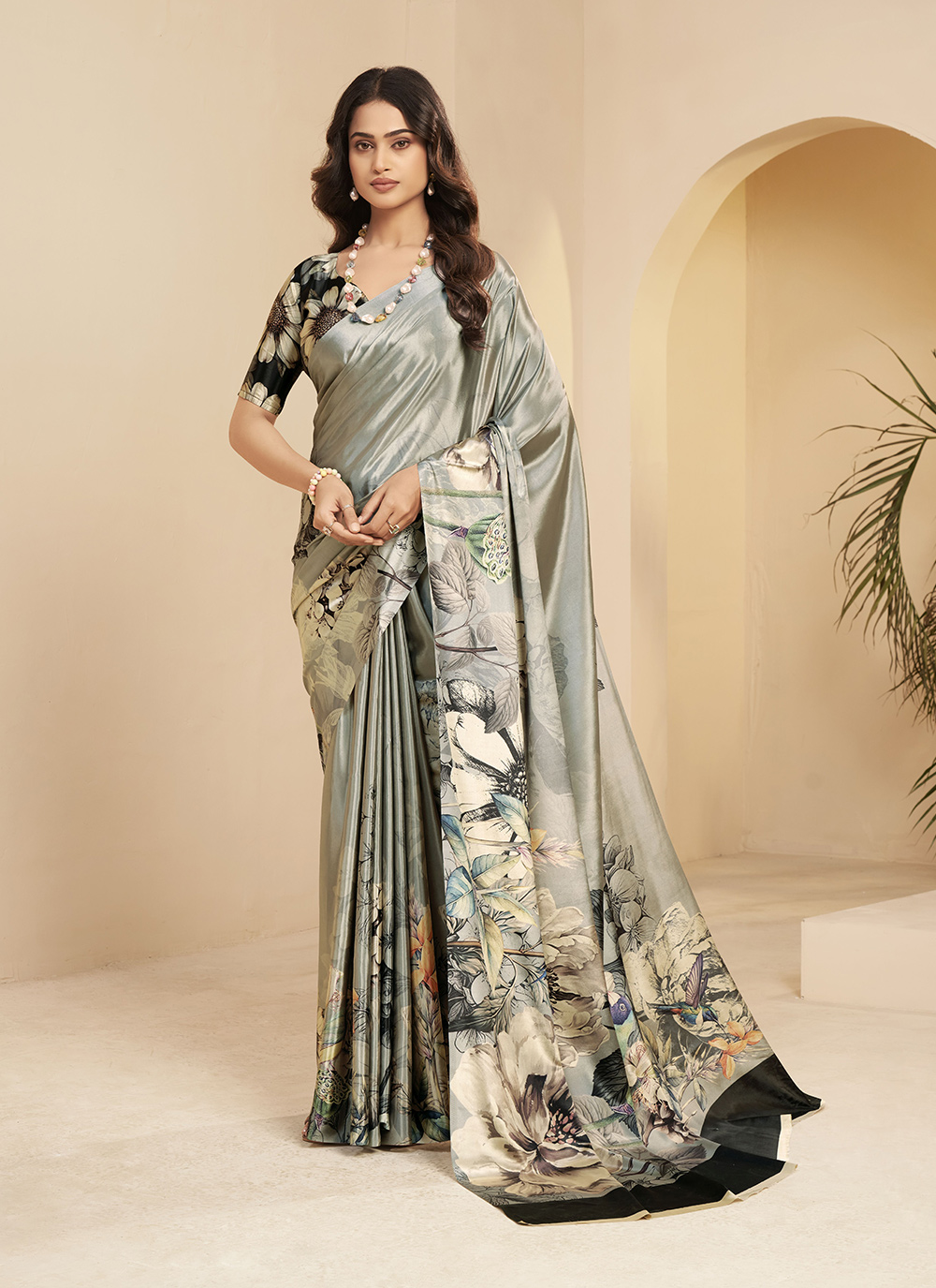 Saree : Malai Crepe Silk , Blouse : Malai Crepe Silk